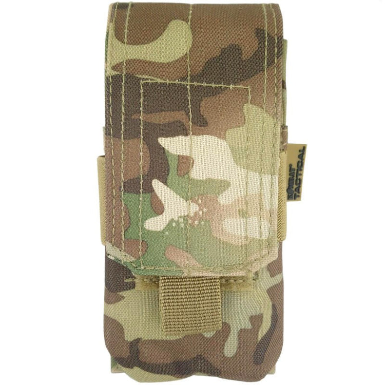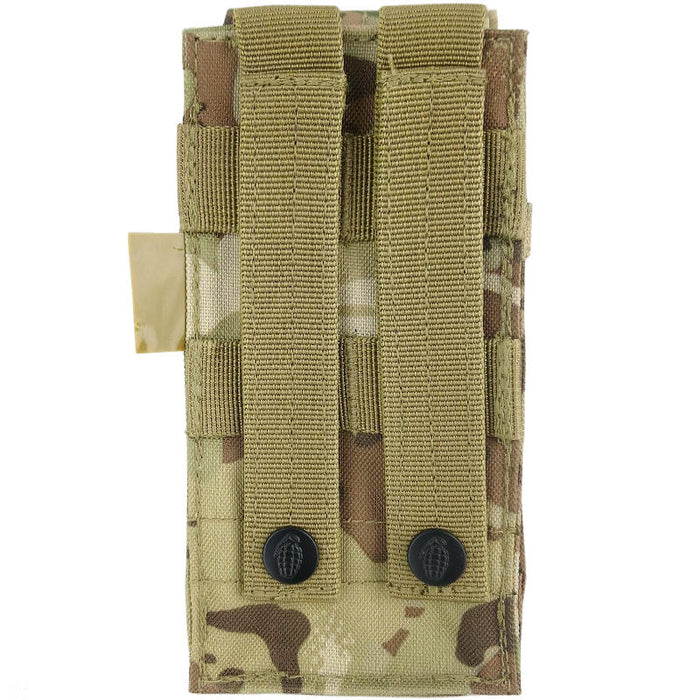 Need more ammo? Keep your primary feed with one of these mag pouches. You can fit either a single magazine or double stack 2 of those bad boys in there. Another very handy feature is the ability to reposition the top flap. It has a hook & loop backing so you can adjust it up or down - meaning you can alter it for different length magazines. Complete with a camo based on the British Army's MTP (Multi Terrain Pattern) and MOLLE backing, attach these to any tactical surface for more ammo!