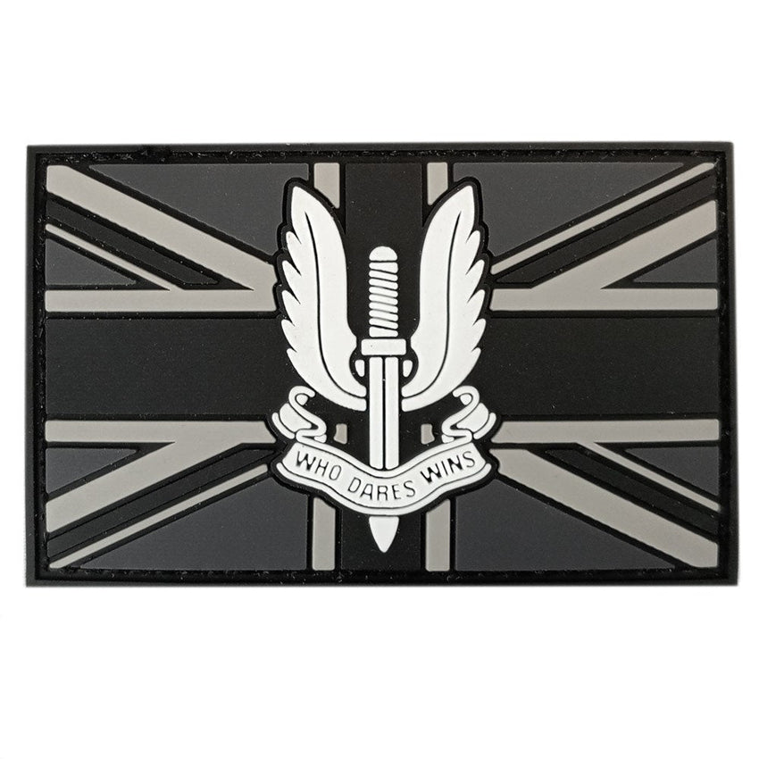 Do the SAS need an introduction? Hardly. Originating in the North African desert in 1941 then a corps in 1950, the Special Air Service specialise in counter-terrorism, close combat fighting and special operations. On this patch the SAS insignia with motto overlies a greyscale Union Jack backdrop.