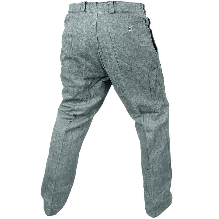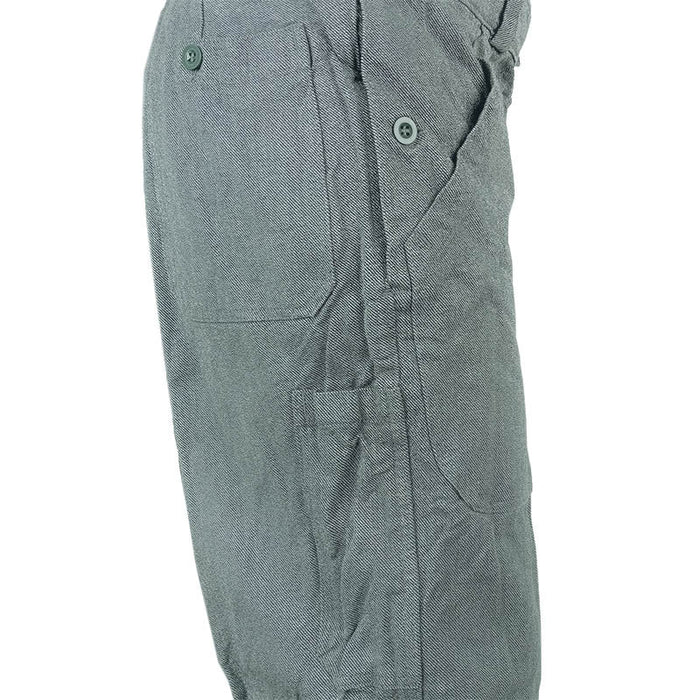 Needless to say - made from thick denim like material, these are built tough! They are quite wide and have pocket slits designed to be worn over other layers. Having said that, they can definitely be worn alone. The right side has a long utility pocket ideal for storing a tool or two while on the job. Belt loops and a buttoned waist are what helps keep these britches up.