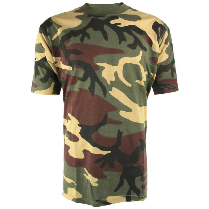 These affordable four colour woodland t-shirts are a great option for everyday wear. Made from 65% cotton and 35% polyester all the way from Vietnam, they're both comfortable and durable. This is a great choice for costume parties and sporting events among other things.
