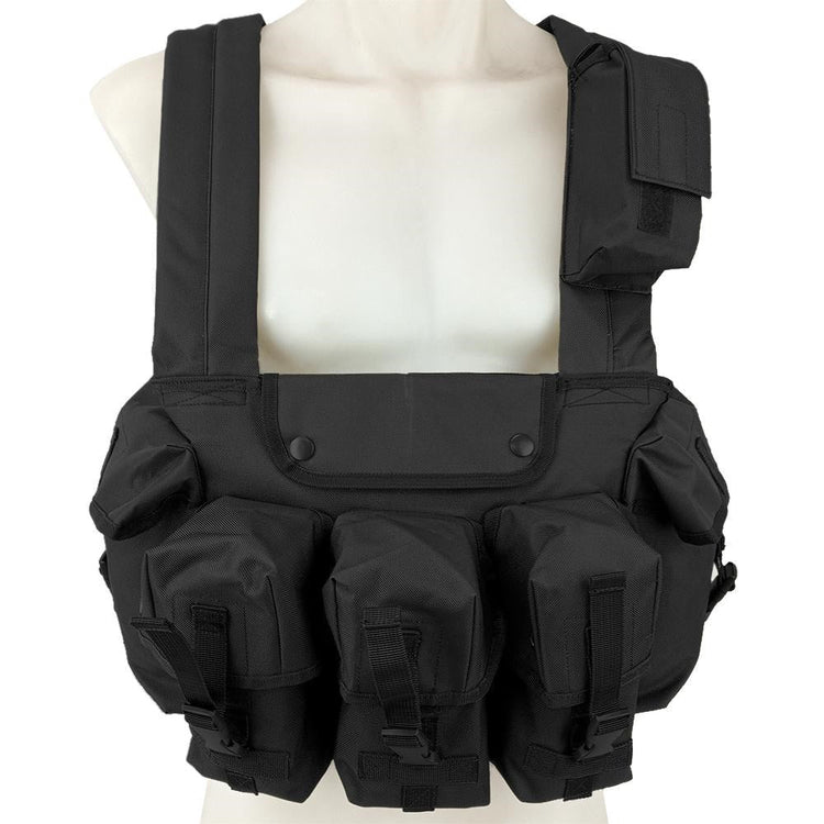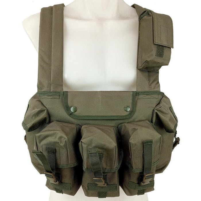 These chest rigs made by Mil-Tec are a copy of the British Army version issued in the 1990's. Consisting of 3 mag pouches, 2 sustainment, 1 radio and 1 map pouch - this rig has plenty to sustain combat from just your chest. The sustainment and mag pouches on the front all fasten with a buckle and hook & loop. This would be excellent for hunters, paintball and airsoft who need the extra storage. A small insert pocket on the back has an internal water resistant lining which is ideal for holding maps. The strap and buckle fastening system make it simple to equip the rig while also allowing a wide range of body sizes to fit comfortably.