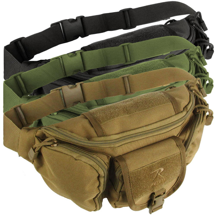 This handy waist pack is perfect for carrying your essential kit on short day trips or while traveling. The design includes a main compartment and three pouches around the outside for tactically placing your gear, giving you quick access when you need it. An internal pocket in the main compartment lets you organise your gear further. All of the pouches have zip closures with a quick release buckle on the front pouch. On the back, the bag features a buckle up waist strap and another zipped pocket.