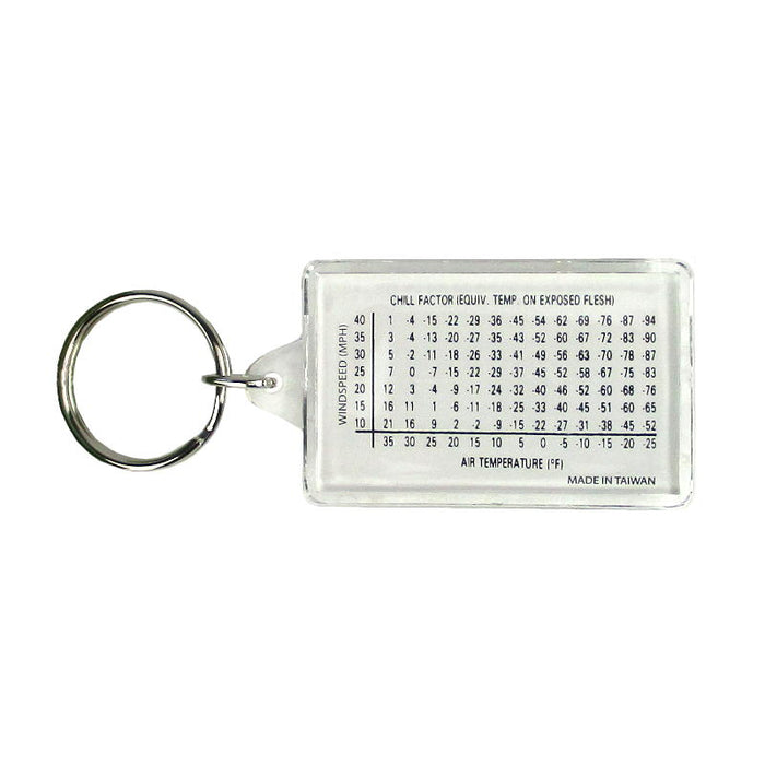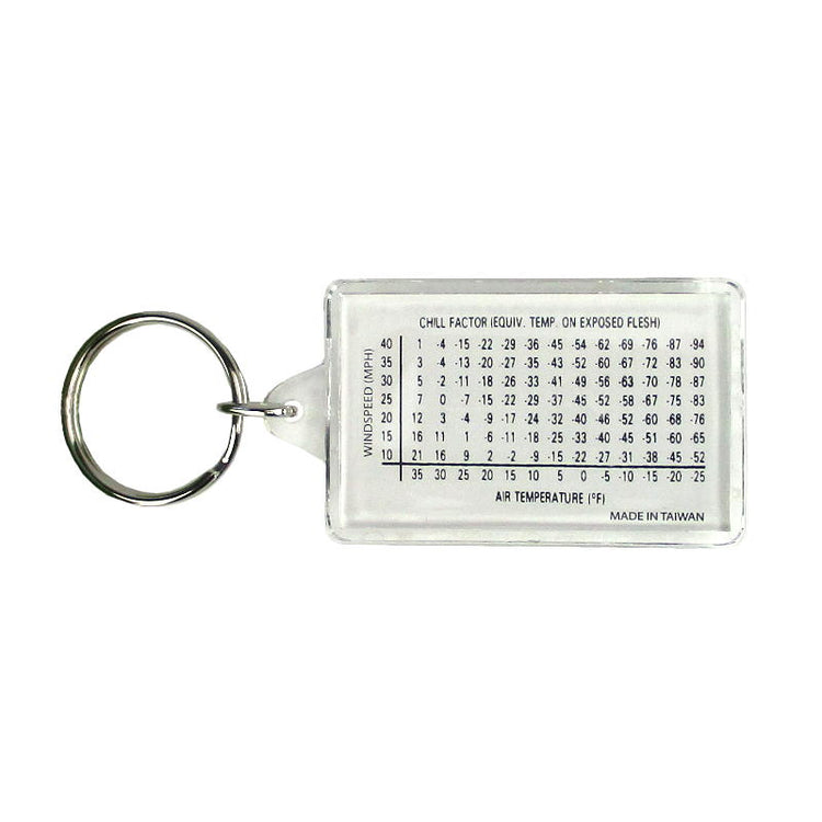 - Wind chill chart on back