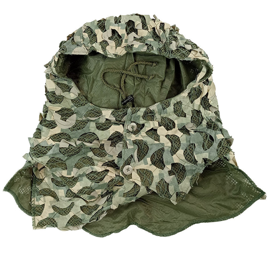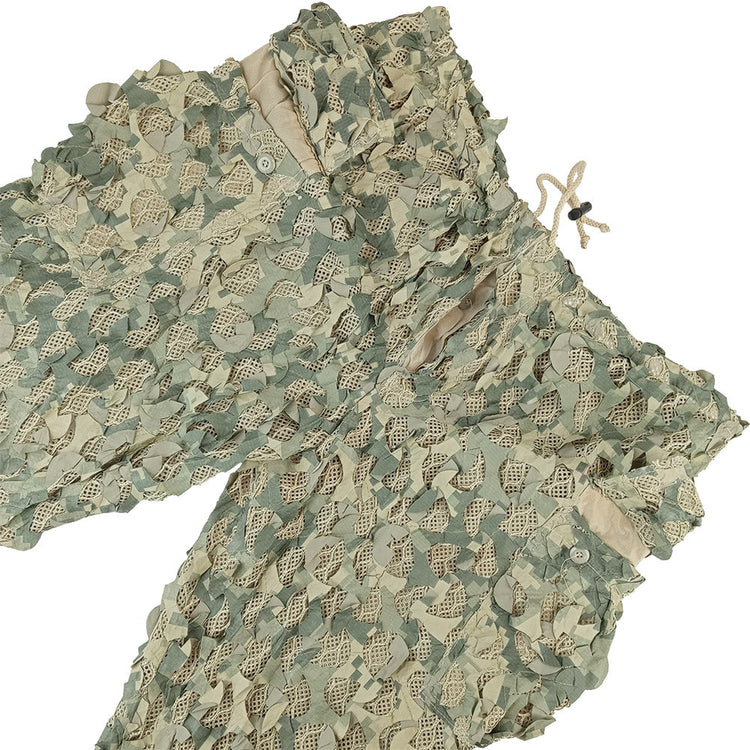 The Jackal Ghillie - Ultralite suit from Camo Systems is a high quality, lightweight, packable over suit, offering excellent 3-D camouflage concealment by breaking up your silhouette. These 3-piece suits (jacket, trousers & hood) have a mesh base with net overlay and finally a laser cut camo netting over that. This makes the suit a really sturdy, and affordable base to build on further, with scrim fabric and local flora!
