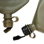 The M1 Nuclear, Biological, Chemical (NBC) caps are sealed, valved and couple with a drinking hose attachment on NATO standard military gas masks. The lids are tethered to the canteen so it doesn't get misplaced, and the body is textured for additional grip. Don't leave for your next hike or hunt without this 2 quart canteen in classic olive drab!