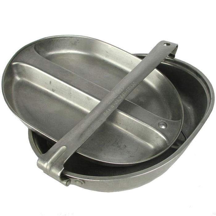 These mess kits were produced mainly in the 1960's during the Vietnam war, but the design designated 'M-1942' remained unchanged mostly. The American doctrine in mind for these was for feeding company sized elements in proper field kitchens as opposed to direct front line combat elements. As long as your not dodging barrages, these mess kits are perfectly suited to your outdoor needs.