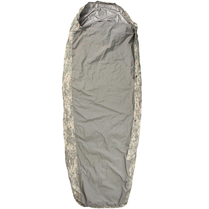 This ACU bivy cover is part of the U.S. Army's modular sleeping bag system. Designed as the outer layer of the ECWS (Extreme Cold Weather System), enclosing the patrol and intermediate sleeping bags for extreme weather conditions. This iteration of the U.S. bivy comes in the UCP (Universal Camouflage Pattern).