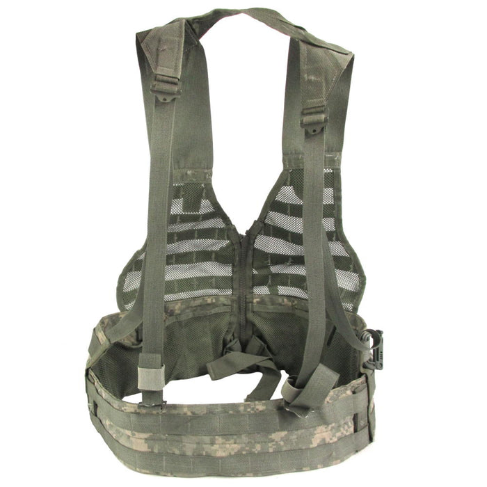 This vest is a genuine piece of US Army surplus, officially named the 'SDS Zippered FLC (Fighting Load Carrier) Vest'. It is a component of the Modular Lightweight Load-carrying Equipment (MOLLE) system. The popular modular webbing attachment system allows numerous components to be carried on the vest, such as magazine pouches, radio pouches and tools for the battlefield. Attach any MOLLE compatible surplus accessories or simply use carabiner clips to attach items. This iteration comes in the UCP (Universal Camouflage Pattern).