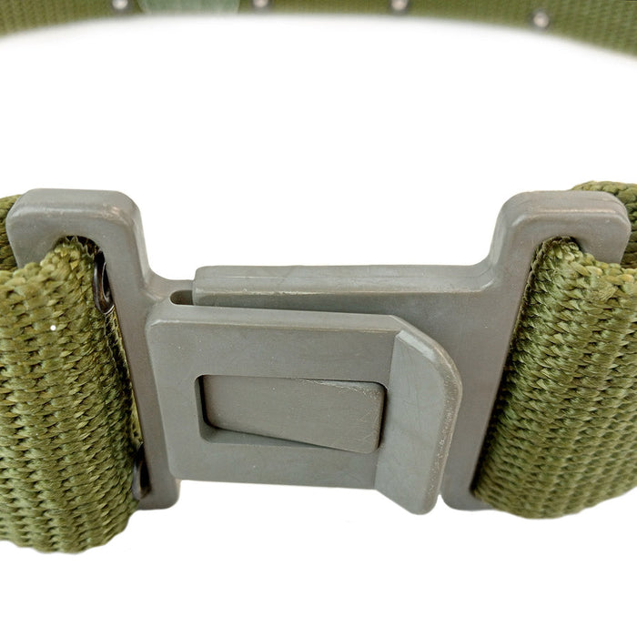 This version of the U.S. Army LC-2 combat belt was originally issued in the early 1990's, though it has now been superseded by the MOLLE system. This model comes with a large grey plastic buckle on the front. Compatible with the ALICE (All-purpose Lightweight Individual Carrying Equipment) system for attaching combat pouches, utility pouches and canteens.