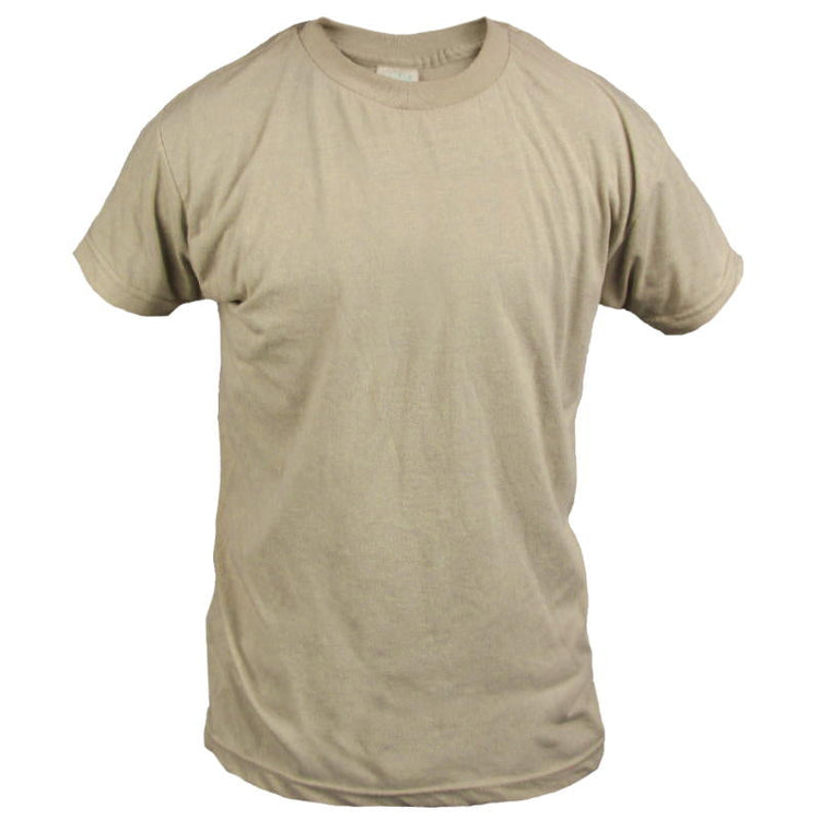 This shirt will see you through intense training sessions and hot weather hiking trips. Or maybe you just need a comfortable shirt to lay around in. Whatever you're up to, you can throw on this affordable t-shirt from the US Army. Due to a range of manufacturers, the content varies - most are polyester though a few are poly/cotton blends. These shirts are designed to allow moisture and sweat to dry quickly, making this shirt a good pick for your summer sports and activities.