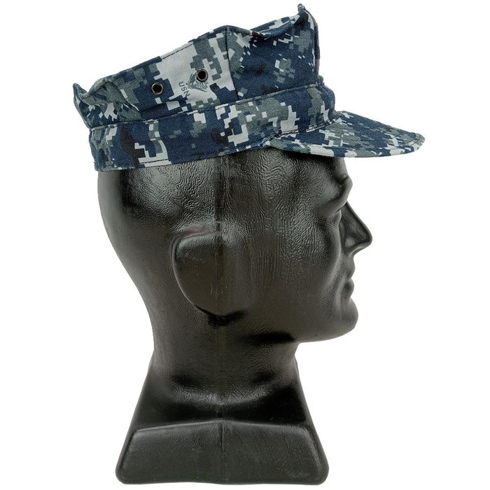 The cap has a stiff but mold-able peak complete with 8 pointed cover. Complete in the odd 'blueberry camo' these definitely have a unique appearance. The cap also has eyelets to allow your head to breathe, handy when sweating it out moving heavy cargo about. A literal head turning piece of headwear, wear one this Summer or add it to your US Navy collection!