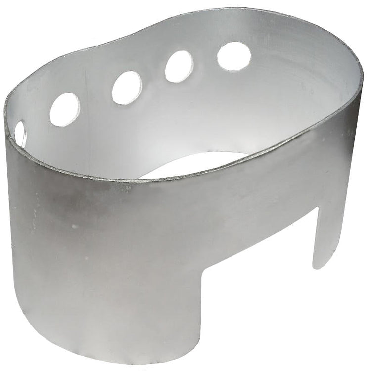 The cook stand has 5 ventilation holes to allow some air in to feed the fire and let smoke out. The main cutout allows for the addition of fuel sources to keep the fire going while in use. These are still a tried and tested design dating back many decades, fantastic for getting dinner sorted on camping or hunting trips.