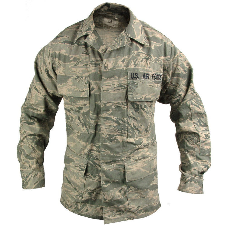This utility coat is part of the the Airman Battle Uniform (ABU) of the US Air Force - the digital tiger stripe pattern. Originally the coat began being issued in 2007 for the ground personnel.