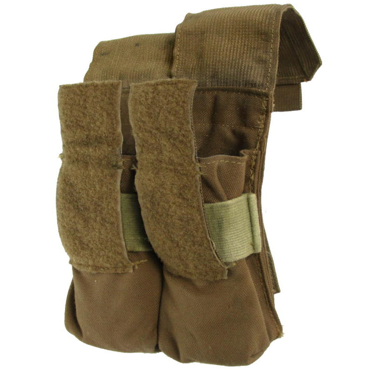 Hold not one, but two M4 or M16 magazines in this pouch from the USMC (United States Marine Corps). Designed for rapid reloads, featuring quick access hook & loop flaps and an elasticated strap for holding the mags in place. The pouch will attach to any MOLLE compatible system including combat vests, belts and other load bearing gear. Made from a durable nylon fabric in coyote brown. Make sure you don't run out of ammo on the paintball or airsoft field and pick up this double mag pouch.