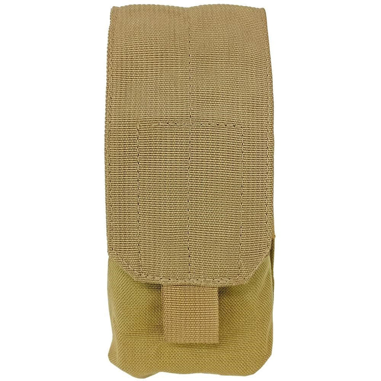 A genuine military issue M4 or M16 magazine pouch from the US military. Designed for rapid reloads, featuring a quick access Velcro flap and bottom drainage hole. The pouch will attach to any MOLLE compatible system including combat vests, belts and other load bearing gear. Made from a durable nylon fabric in khaki. You can double stack 2 AR mags or just run them as singles, the choice is yours! Make sure you don't run out of ammo on the paintball or airsoft field and pick up this ammo pouch.