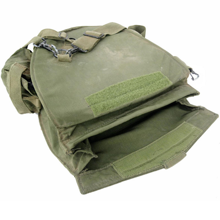 M40 protective masks were phased into service during the 1990s as a replacement for the M17 gas mask. This M40 carry bag would house the gas mask components; filter, face piece and decontaminating kits. Complete with two straps for wearing over the shoulder or around the waist.