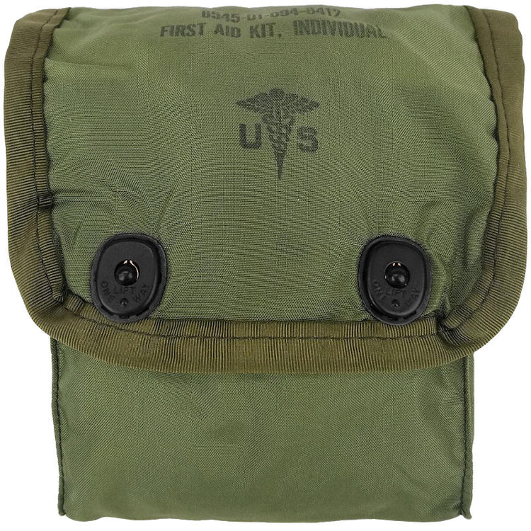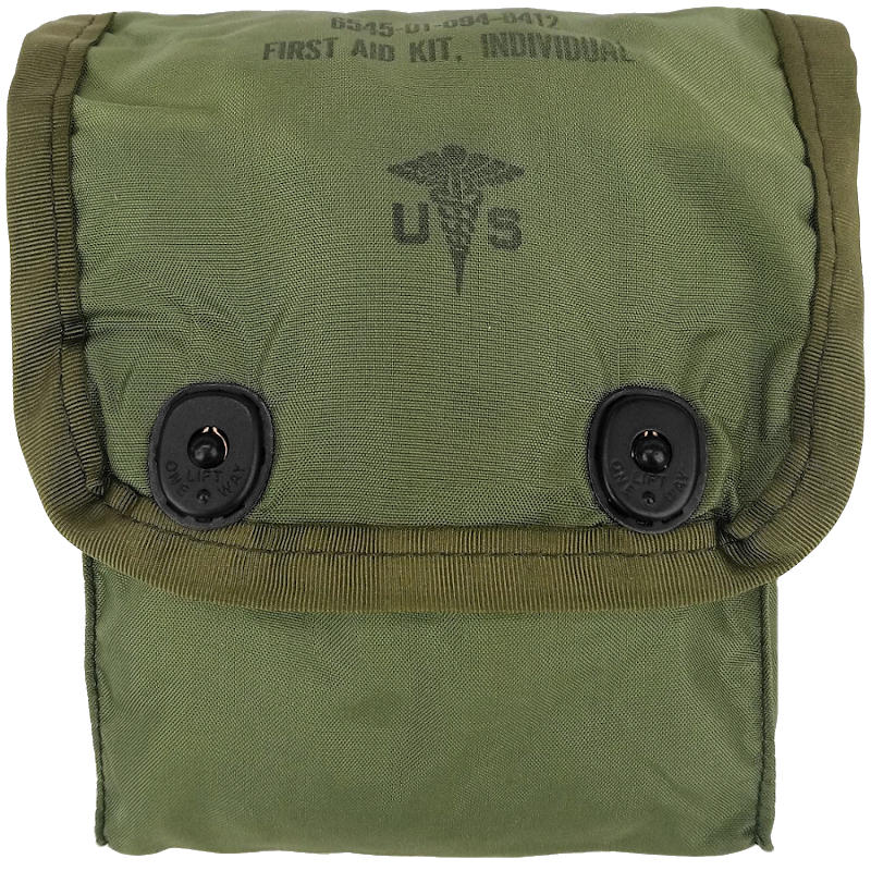The original Individual First Aid Kit (IFAK) pouches first saw issue during the Vietnam war. Issued initially to Marines and later the Army, the pouch was designed to carry a IFAK plastic box containing medical supplies. These post-war pouches (and the plastic boxes that aren't included) are taller than the Vietnam war originals.