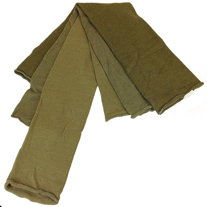 The humble tubular woolen scarf has been a cornerstone piece of kit for the US soldier since World War 2. Made from wool and double sided, they provide plenty of warmth around the neck. Further more, with plenty of length they can wrap comfortably around your neck and tuck into your jacket providing seamless insulation. The length of these scarves does vary though, from around 125cm to 100cm. Not as flash as previous batches - some have markings or small, well done repairs. These scarves also vary in shade of olive. Due to the wool we recommend dry cleaning or hand-washing these - do not tumble dry.