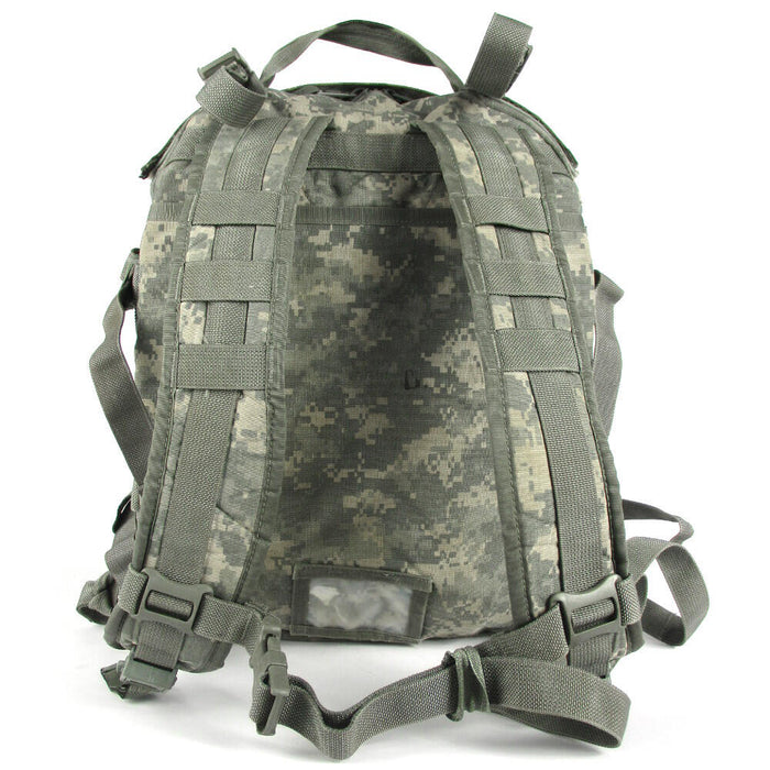 This MOLLE II Assault pack has a decent sized main compartment - approximately 27 litres - with a slightly smaller compartment on the front - approx. 7 litres. Plenty of adjustable strapping to keep things taught and stable. There is also no shortage of PALS webbing to add on any additional items to the outside of the pack. If you have the large MOLLE II rucksack, you can attach this assault pack to the front of it to make one seriously big pack - if you have the legs to carry that sort of load.