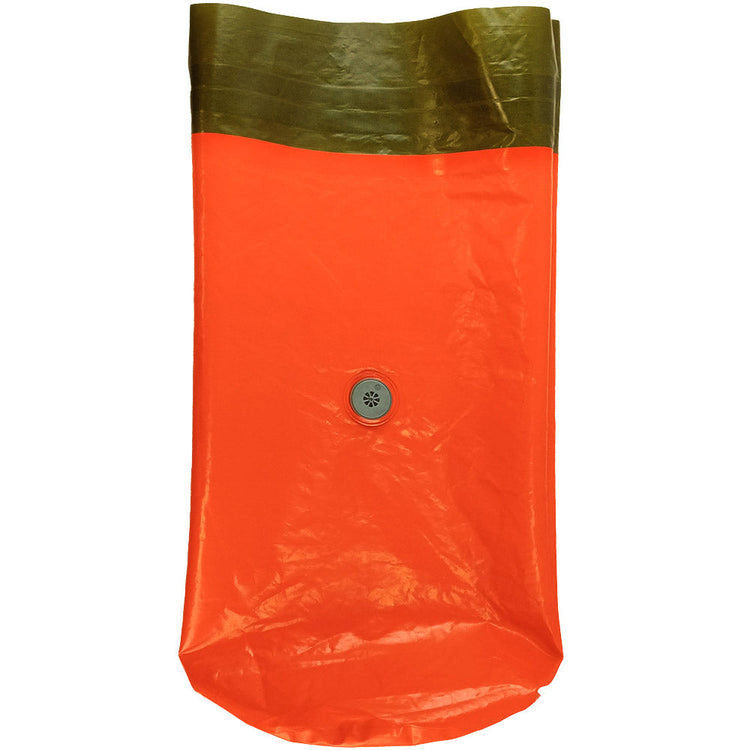 Made by SealLine, these liners are easy to secure featuring Seal's no fuss roll down & buckle technique. The manual purge valve is a nice touch, allowing air to easily escape but not come back in, compressing the contents and saving space in your pack, or anywhere you store it. With bright orange on the reverse, flip inside out and bam, you have a visible safety marker. If you don't want to find your dry bag ASAP in blaze orange, the regular exterior is a smooth coyote brown. Very nice. These dry bags have seen some use however appear to be in very good condition.