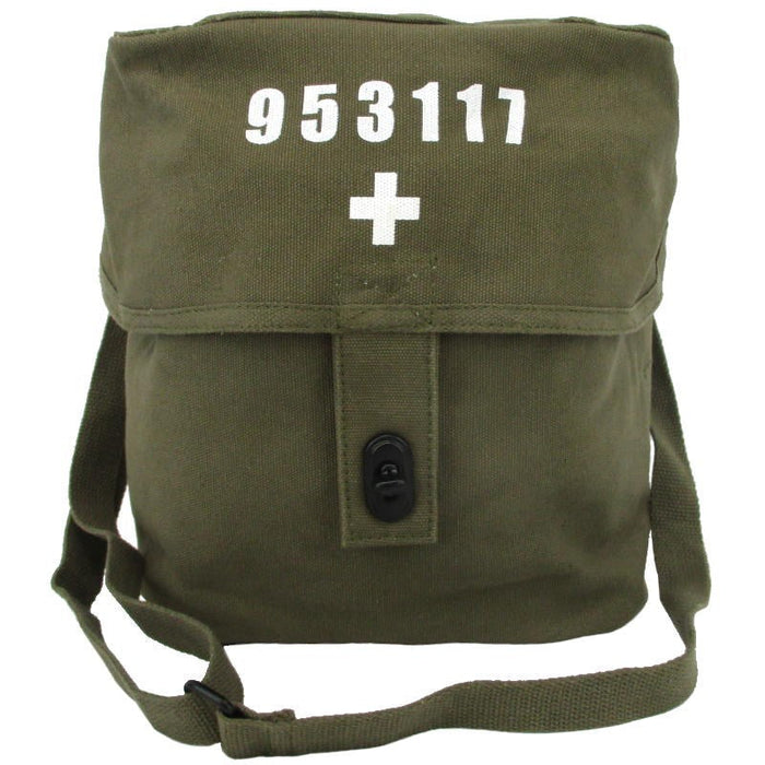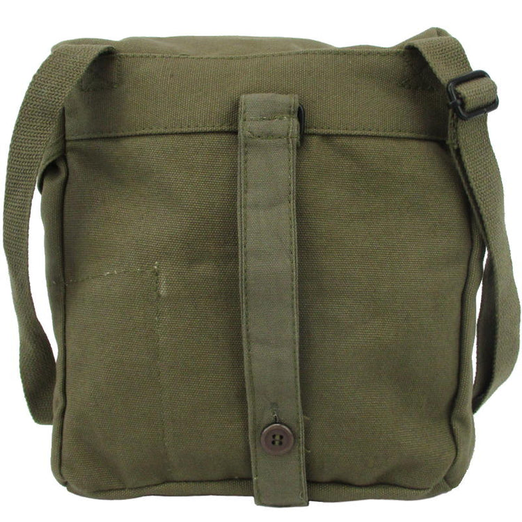 These swiss shoulder bags have that vintage look to add to your everyday carry. Made from a robust olive drab canvas and unique military stencil design these look the part. They come with a fully adjustable shoulder strap and one main compartment that can easily fit a lunch, cell phone, wallet and keys with ease. It also has an internal drink bottle sleeve that has a draw cord to secure it in place. All of this is accessed with a large flap that has a metal revolving toggle on the strap to keep everything secure.