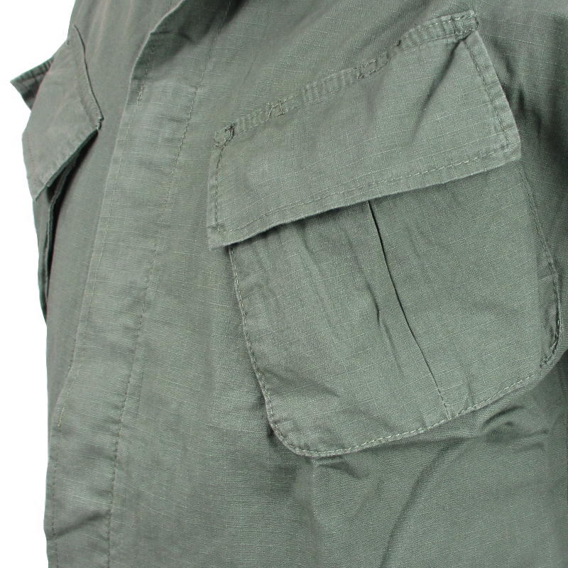 The shirt has a full length opening that buttons all the way up and is protected by a storm flap (handy for not snagging buttons in the jungle). Each cuff is adjustable with two different button lengths. The shirt dons two paratrooper style chest pockets plus two waist pockets. Each of these are secured with a two button flap and the pockets cut allows for them to be well expanded.
