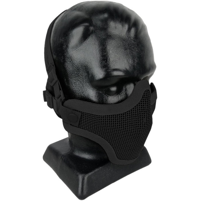 Half-face mesh masks for airsoft are a preferred choice over solid masks for some players. The benefits of a wire mesh include; no muffling of your voice, they're easier to breathe through and they prevent fogging up your goggles. The mesh of this mask is made of steel and is plastic coated for weather and rust resistance.