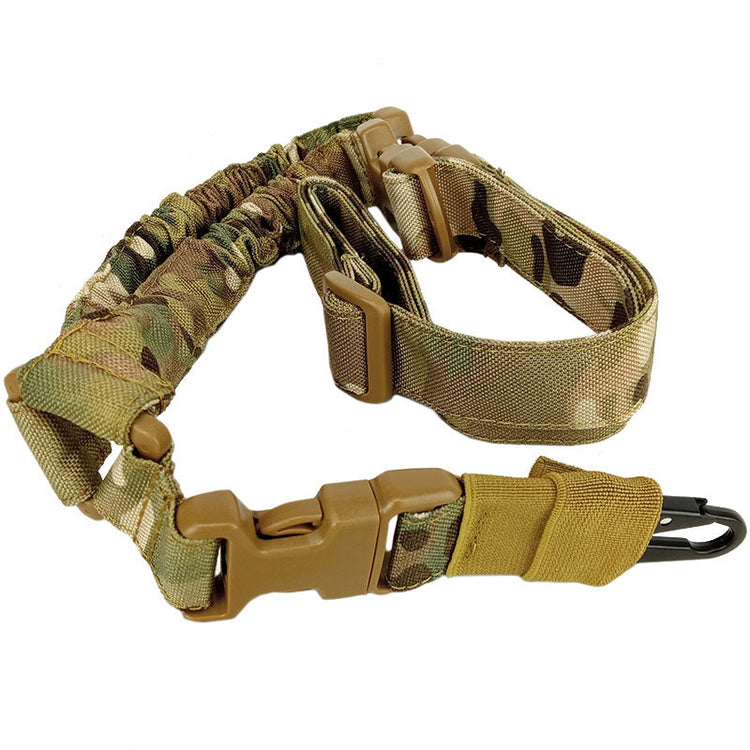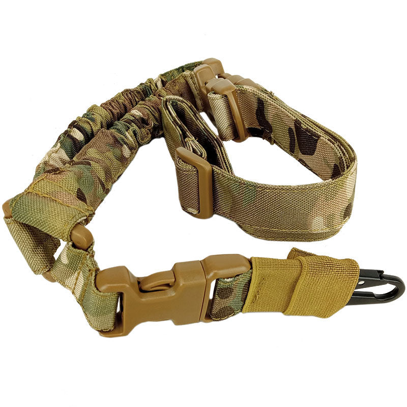 The Single Point Sling from Viper Tactical is designed to be a light weight yet durable option to carry your AEG. Switching between your primary and secondary airsoft weapons is a smooth experience thanks to the strong bungee that absorbs the downward force of the weapon dropping. Three quick release buckles allow quick detachment of the weapon from the sling or the sling from your person. An alloy metal spring hook attaches to the weapon and has a sleeve for protection and concealment.