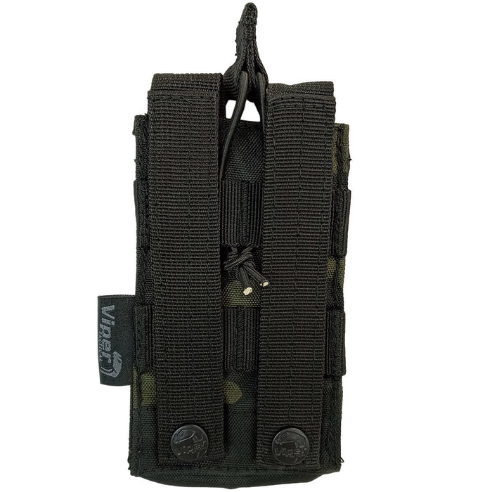 Want something a bit more quicker and quieter reloading mags with instead of the ol' hook & loop flaps? These 'single shingle' mag pouches utilize a pull tab and bungee cord to keep retention on the mag but also easy to access. The retention can be adjusted at the rear depending on your mag height but these are generally designed for a single 5.56 mag. Equipped with MOLLE at the rear you can add these to any tactical surface such as 1st line belts, chest rigs, plate carriers or backpacks. The front is also covered in MOLLE so you can add another layer of these pouches or any similar sized pouch.