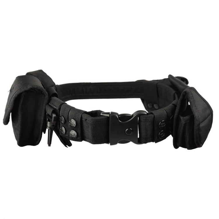 A secure three-point buckle fastens this system around your waist. The length can be adjusted and secured in place with a hook & loop strip around the interior of the belt. This system is an solid solution for carrying essential gear if you're in the line of security work.