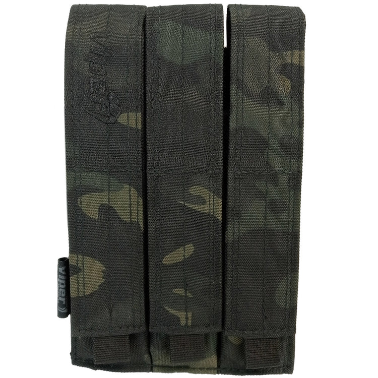 Made from a hard wearing polyester these pouches come with pull tabs to connect with any MOLLE compatible surfaces. Attach them to your plate carrier, vest, belt or drop leg platform. The pouches are opened/secured with the basic hook & loop system to allow for secure carrying and quick reloads. Each magazine cell holds one magazine, for a total of three. Keep your SMG loaded for airsoft today!