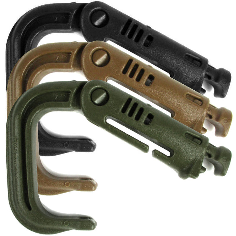 It's always good to have a quality carabiner on hand if you're an outdoor enthusiast. These Viper Tactical V-Locks are quick release D-rings which can be used on 1" wide webbing and can maintain an open position with the latch, if needed. Perfect for webbing, packs, paintball/airsoft gear and many more applications. This is a pack of two.