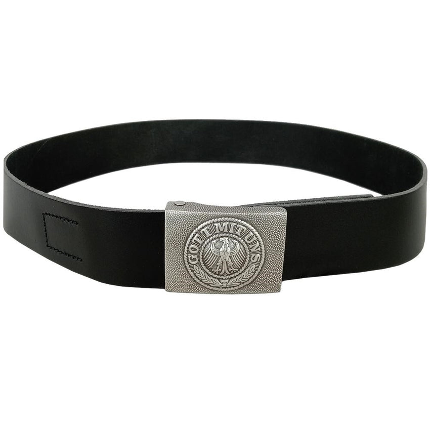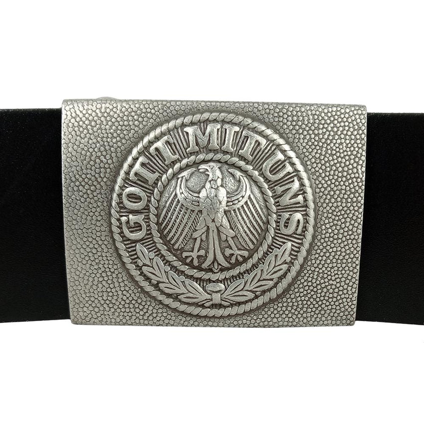 With the fall of Kaiser at the end of World War I, Germany became officially the Weimar Republic (or unofficially, the German Republic) from November 1918 until March 1933. During this period Germany was allowed only a small military known as the Reichswehr. These belts are a reproduction from this period and feature the buckle engraving 'Gott Mit Uns' (God is with us) and a eagle in the centre known as a Reichsadler, or Imperial Eagle.