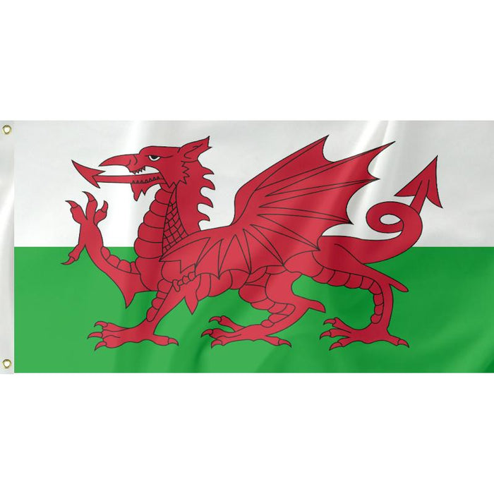 "Baner Cymru or Y Ddraig Goch" (The Red Dragon) is the official name for the flag of Wales. This unique flag consists of the red dragon on a white and green field. The current design was adapted in 1959, but with many 'heraldic charges', the exact representation of the dragon is not standardized and many versions exist.