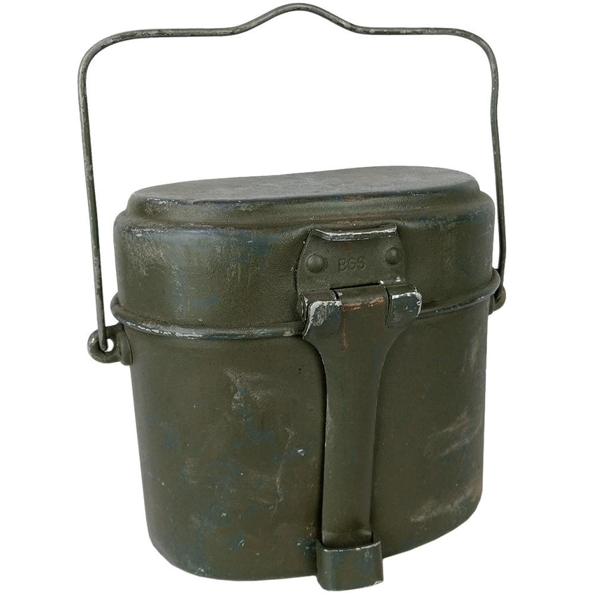 After World War 2, the Western Allies were protecting West Germanys borders. However in 1951, West Germany was allowed to create the 'Bundesgrenzschutz' (Federal Border Guard) to guard its own borders. Both the rank and file saw no reason to replace a very much battle proven design, so these mess kits remain fairly unchanged compared to WW2 versions. The only real difference being colours, handle joints and stamp markings.